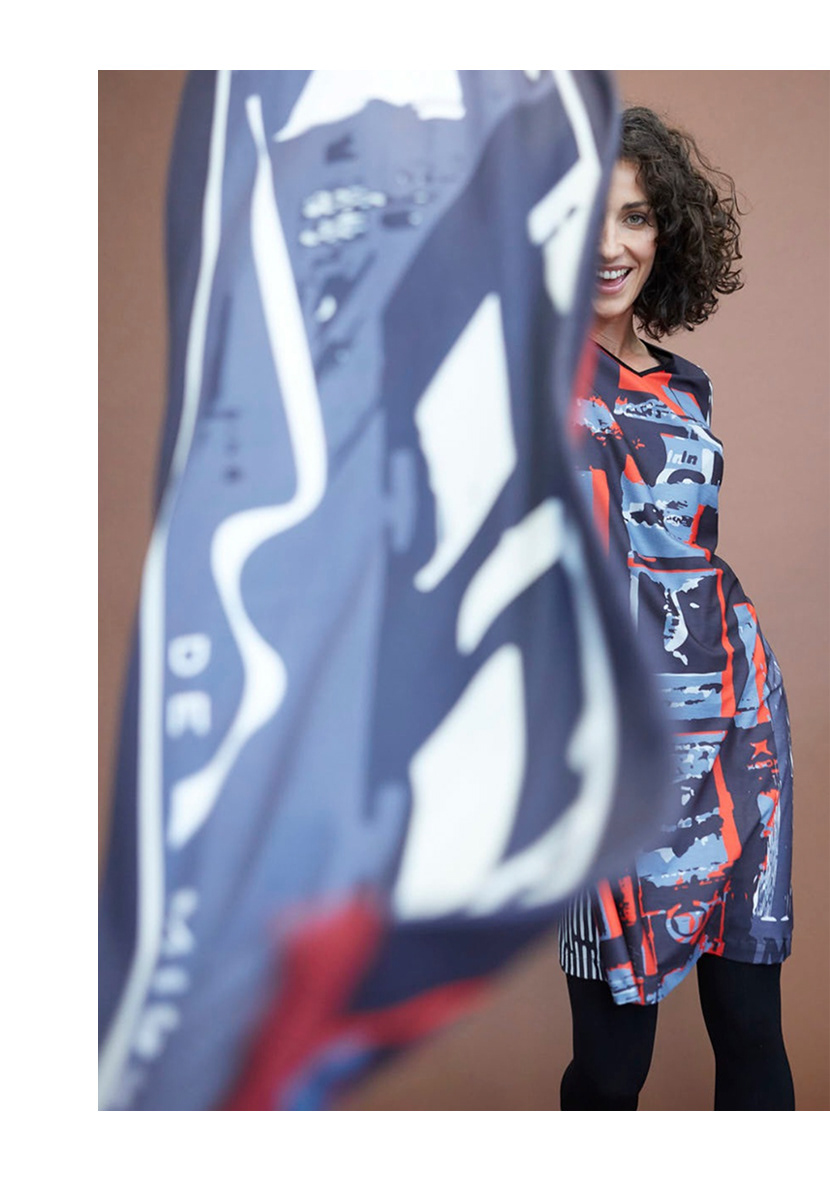 ada a mano y pantalones de estampado